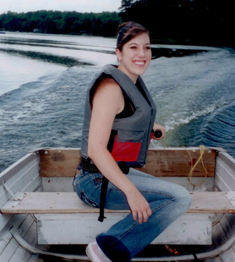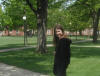 Laura at one of her favorite places on earth, along the Fox River in Geneva. The wedding reception for Mark and Laura was held in the building right behind her. |
